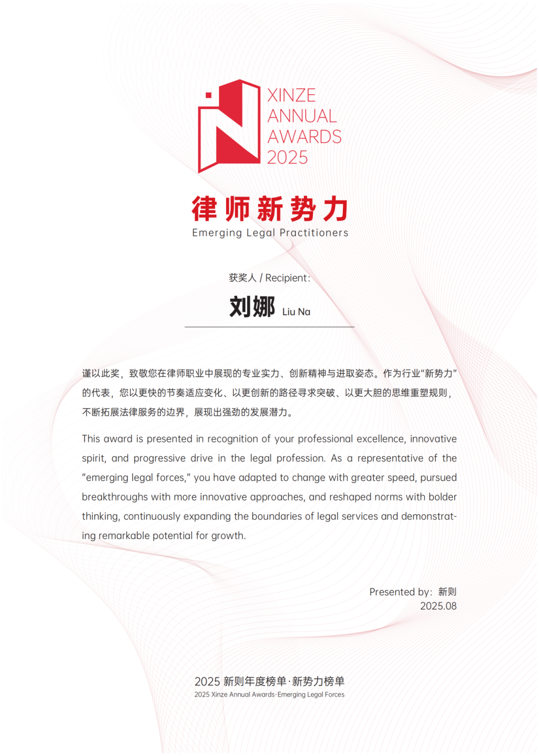 2025年8月30日,新則「NEXT 新勢(shì)力大會(huì)」在上海成功舉辦。大會(huì)聚焦青年律師的成長(zhǎng)與責(zé)任,通過跨代際的深度對(duì)話直面法律行業(yè)的熱點(diǎn)問題。“律師新勢(shì)力”榜單同期發(fā)布,恒都寧波分所主任陳亞納律師、恒都昆明分所創(chuàng)始合伙人、黨支部書記郭蛟律師、恒都重慶分所運(yùn)營(yíng)主任劉娜律師、恒都總部文萁律師、恒都總部井靜娟律師,五位律師榮登本年度“律師新勢(shì)力”榜單。