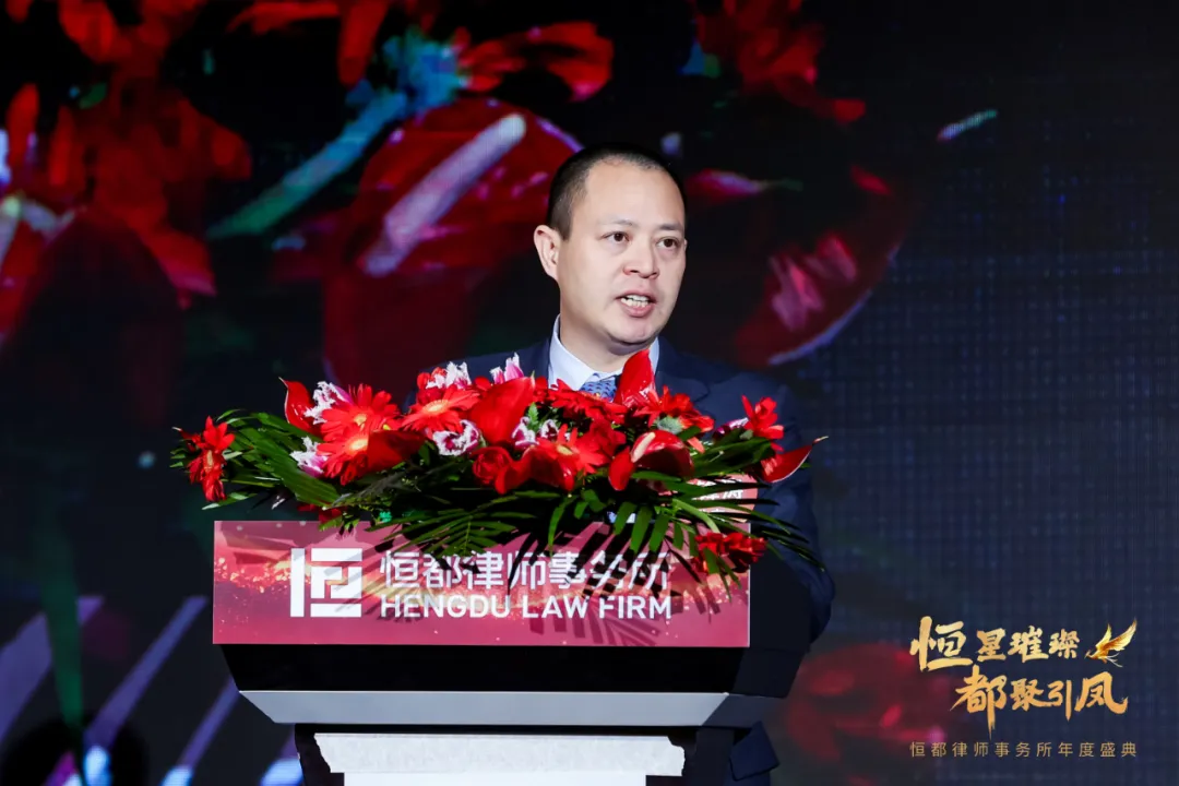 在2024到2025新跨越的關(guān)鍵節(jié)點(diǎn),恒都總所管委會(huì)主任高警兵,恒都總所創(chuàng)始人、主任江鋒濤為本次盛典發(fā)表致辭。