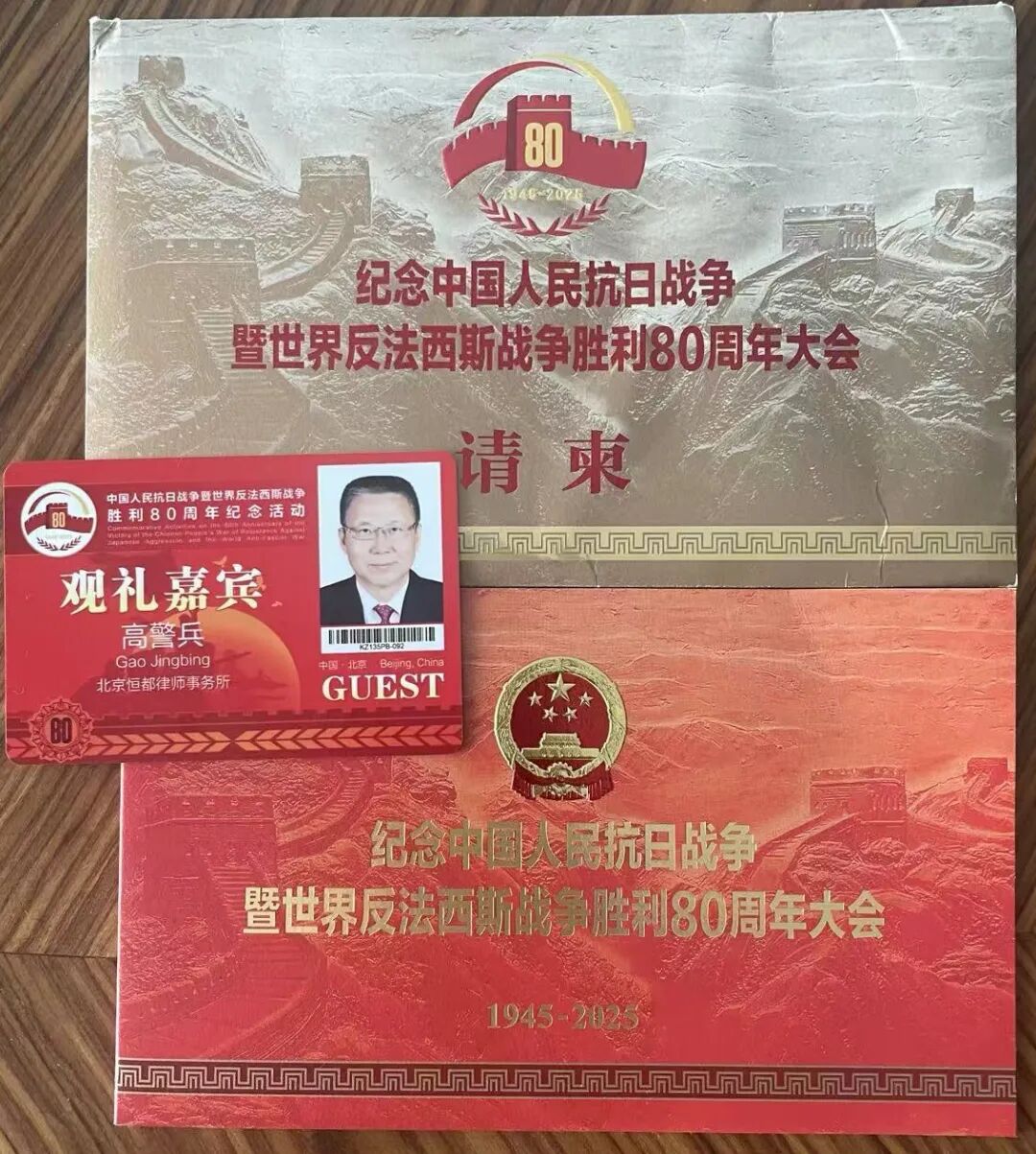 ?2025年9月3日,紀(jì)念中國人民抗日戰(zhàn)爭暨世界反法西斯戰(zhàn)爭勝利80周年大會(huì)在北京天安門廣場隆重舉行,當(dāng)晚《正義必勝》文藝晚會(huì)在人民大會(huì)堂隆重舉辦。恒都律師事務(wù)所管委會(huì)主任高警兵律師受邀現(xiàn)場觀禮九三閱兵及《正義必勝》文藝晚會(huì)。大會(huì)現(xiàn)場,各界代表共同聆聽了習(xí)近平總書記的重要講話,深刻感悟中華民族偉大的抗戰(zhàn)精神;與此同時(shí),恒都各分所也組織集中觀看了現(xiàn)場直播。此次觀禮既是對(duì)歷史的莊嚴(yán)銘記